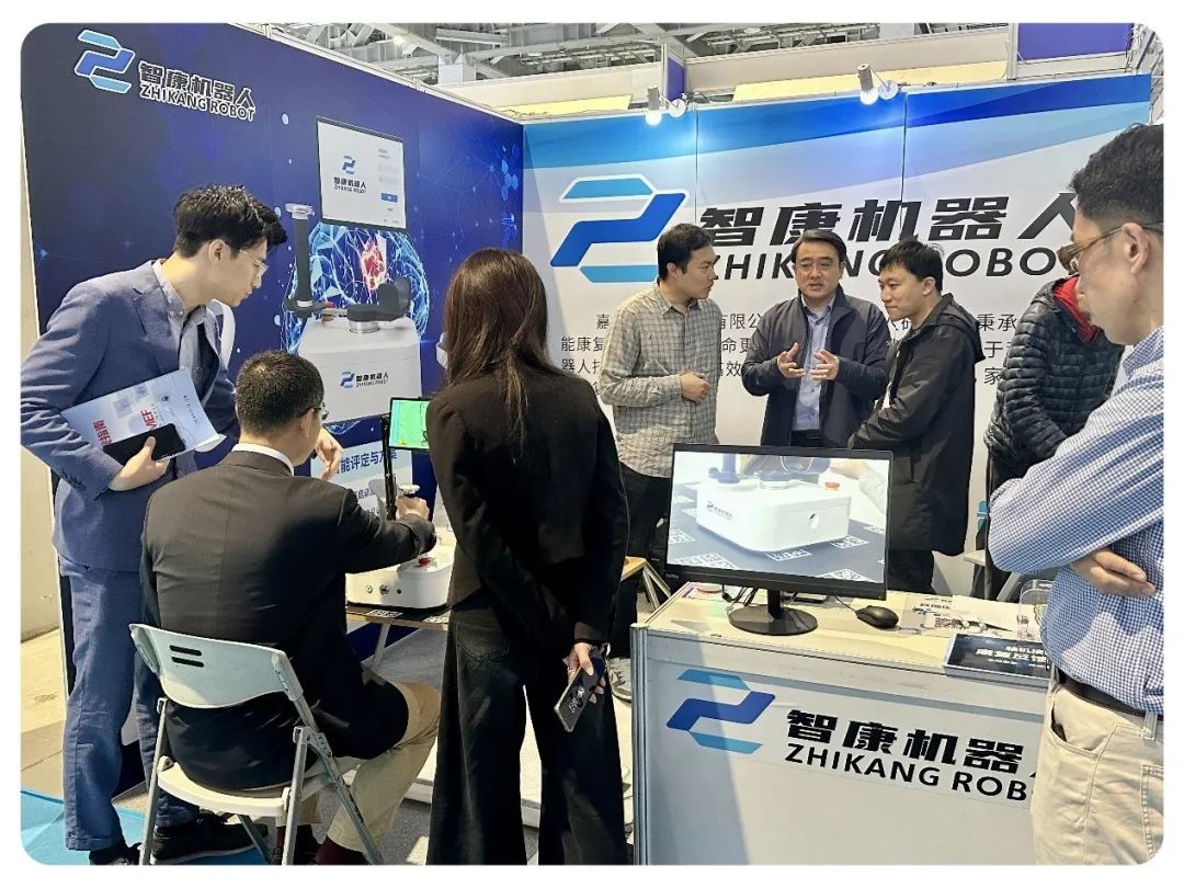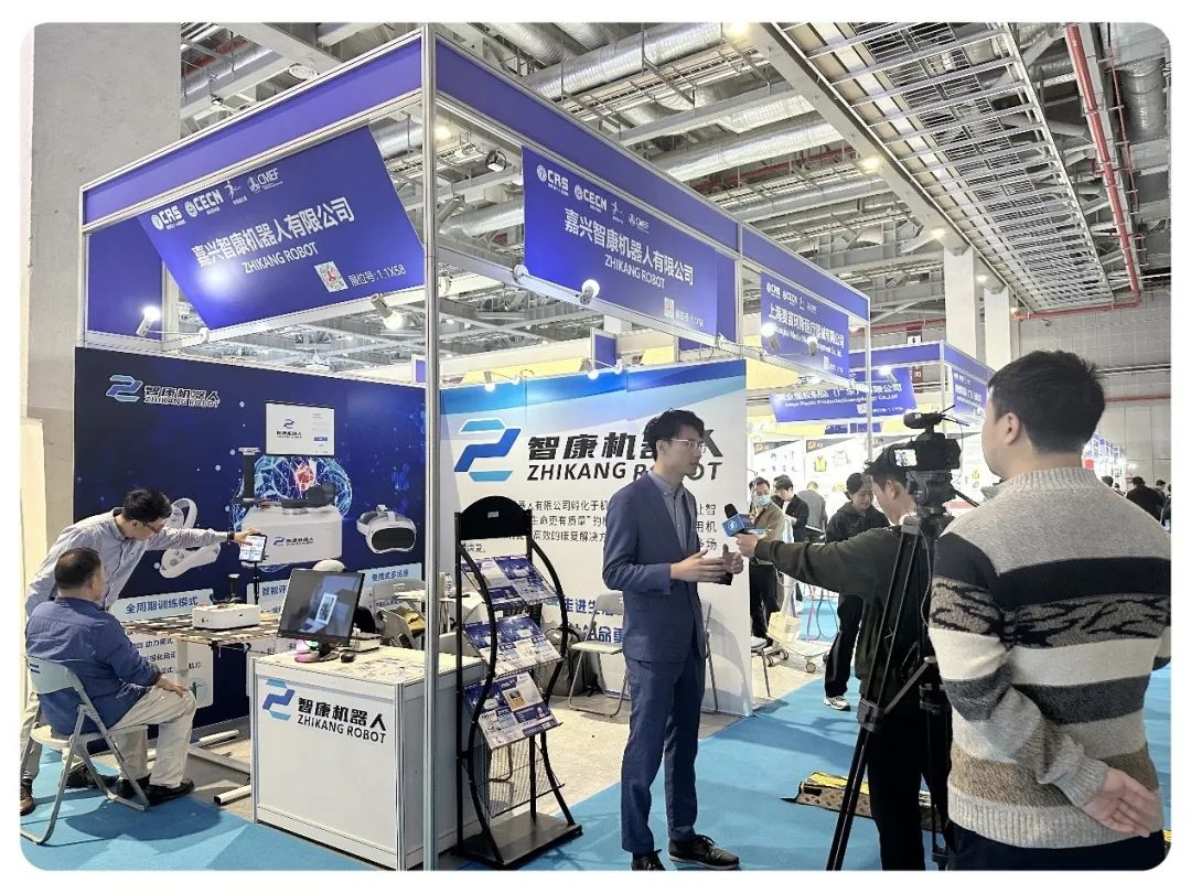 机器人平台孵化企业——智康机器人公司的全周期多场景上肢康复机器人被评为CMEF康养机器人优选产品,上海交大医学院康复星空电竞单春雷院长与太平洋保险一行,好博医疗,招商集团,光大特斯联,上海电信等公司的众多业界领军人物纷纷莅临展台交流体验。