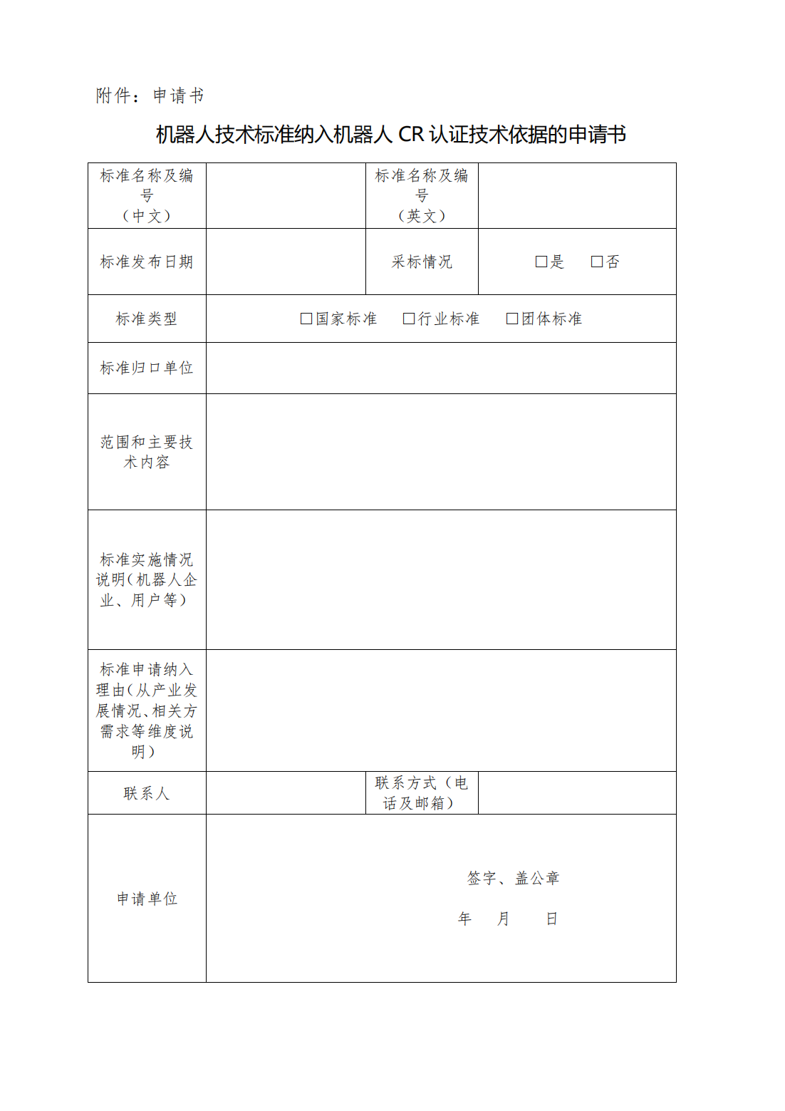 2025 年度机器人标准纳入中国机器人认证(CR认证)技术依据的征集通知