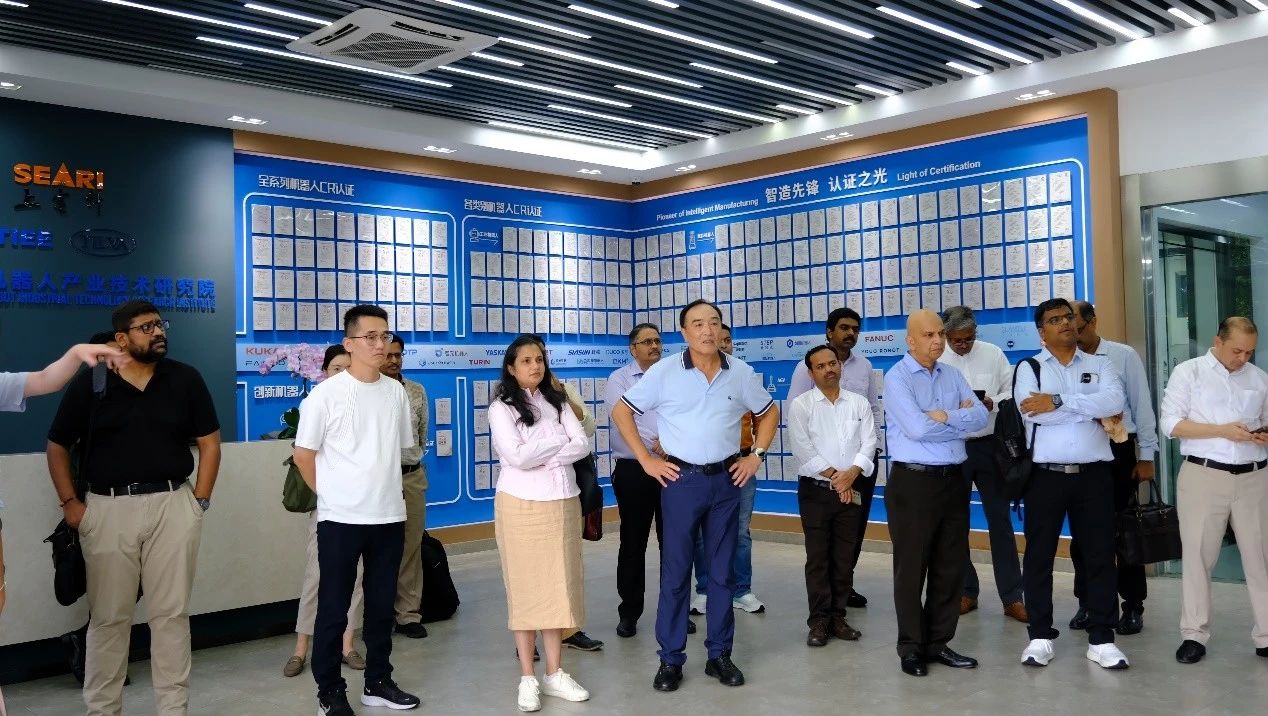 7月24日,印度塔塔集团(Tata Group)代表团一行到访星空电竞(中国)机器人有限公司官网(以下简称”上研院“),实地参观机器人检测试验室、智能创新研发实验室、具身智能机器人数据训练测评试验室,重点了解国家机器人检测与评定中心(总部)职能、行业标准制定与检测认证服务等工作进展,并就中国机器人认证(以下简称”CR认证”)体系及国际互认机制展开深入交流,上研院副院长周梅杰热情接待。