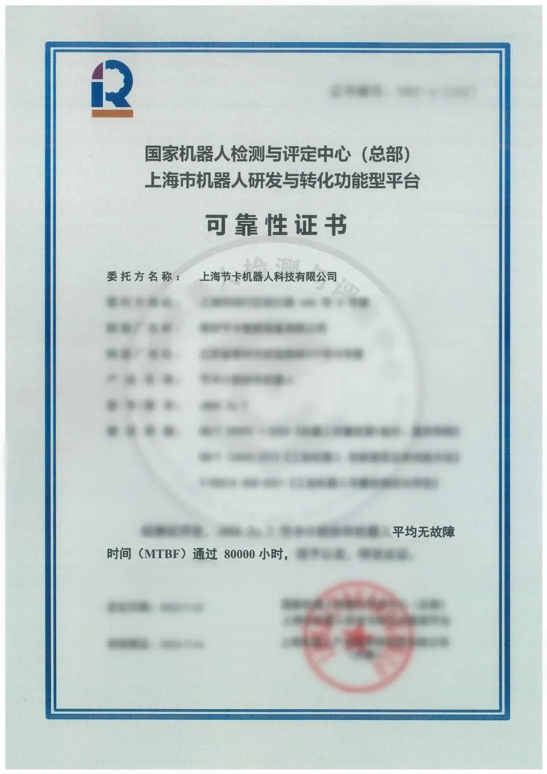 近日,上海节卡机器人科技有限公司(以下简称“节卡机器人”)顺利通过了星空电竞(中国)机器人有限公司官网的 MTBF 80000小时测评。
