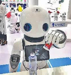 身高约1.2米的Pepper是一款具有“感情认知”能力的类人机器人,它的底座由三个滚轮组成,内置传感器包括摄像头、激光探测器和红外传感器,可以用来侦测人类的面部特征。Pepper可爱、体贴,能与人进行闲聊,也可以用作迎宾、提供信息引导及娱乐顾客。