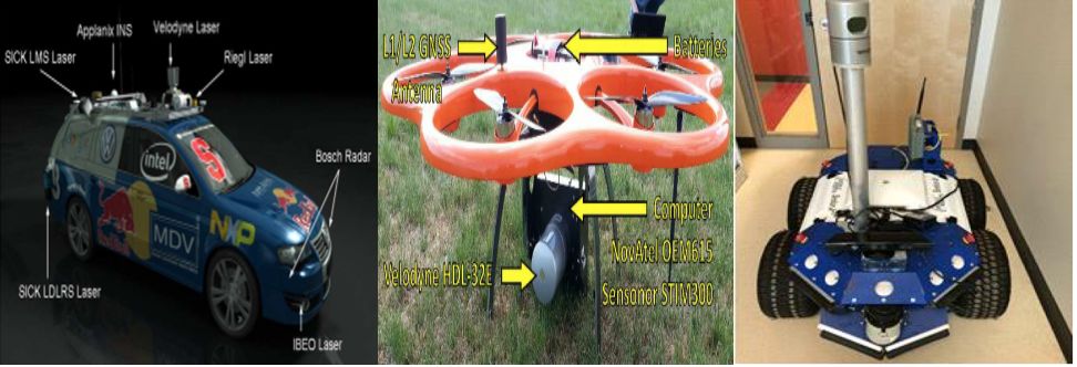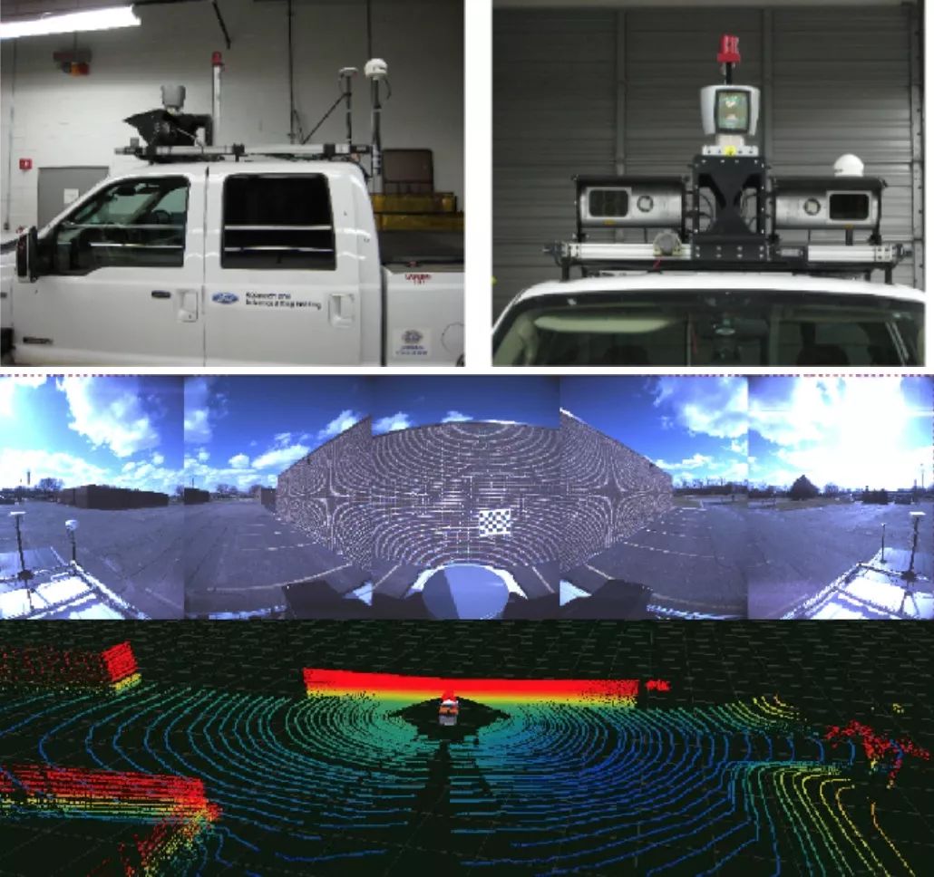 通过调研及查找相关文献,目前激光雷达和全景相机组成系统主要应用于SLAM、地图构建、定位、导航、路径规划等研究领域。该系统可以实现无人驾驶三维环境识别重建、机器人星空电竞室内外高精度地图构建和跟踪导航,能够将外界环境颜色信息和深度信息集于一体,可大大缩小识别误差和信息错误丢失率,如下分别为装有该系统的无人车载实物图及其实现的地图构建效果图。