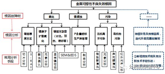 以化学沉镍金板金面可焊性不良为例,阐述建立失效分析故障树的方法: