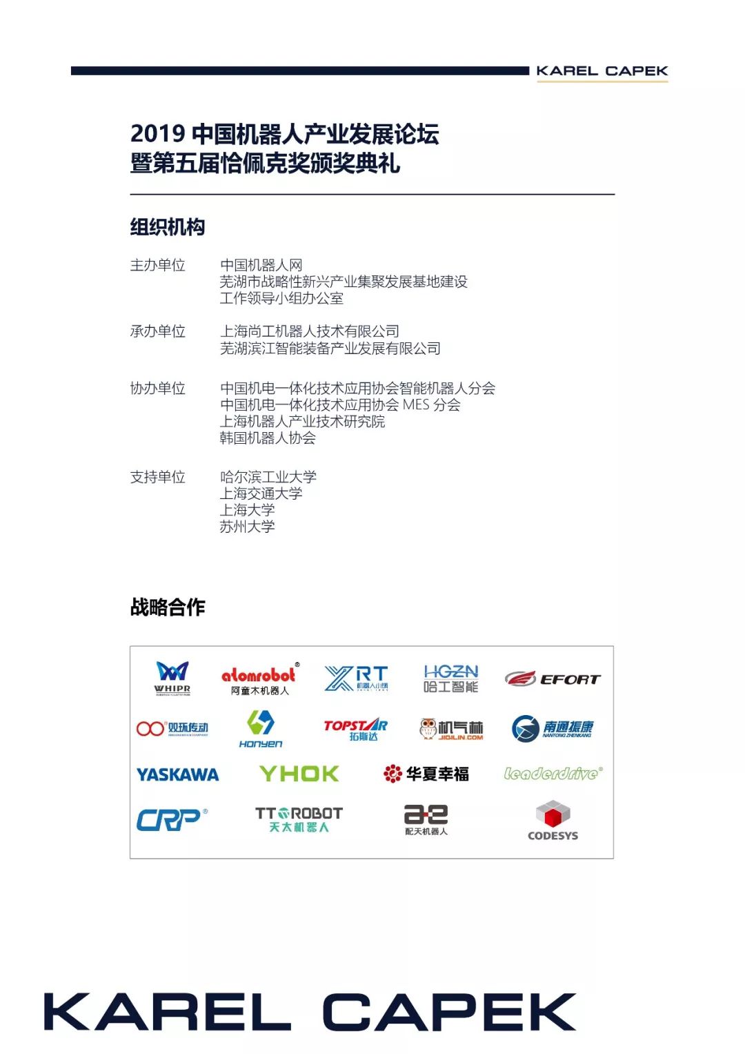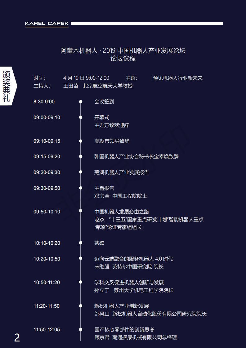 由星空电竞(中国)机器人有限公司官网协办的2019中国机器人产业发展论坛暨第五届恰佩克颁奖典礼将于4月18-20日在安徽芜湖盛大举行。今日,大会议程震撼公布!