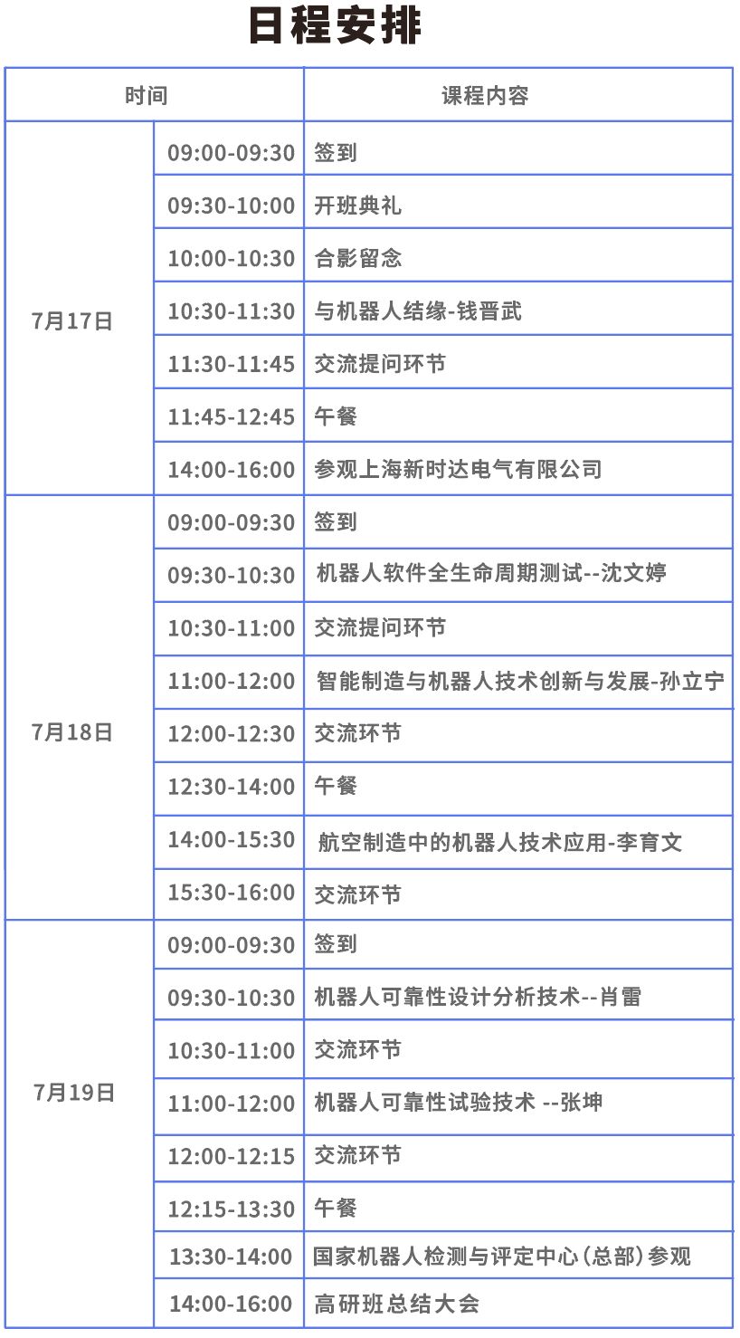 在蕴育希望的时节,在怀揣梦想的7月,由上海人力资源和社会保障局批准、星空电竞(中国)机器人有限公司官网主办的2019年“上海市机器人可靠性与智能化高级研修班”开班啦。