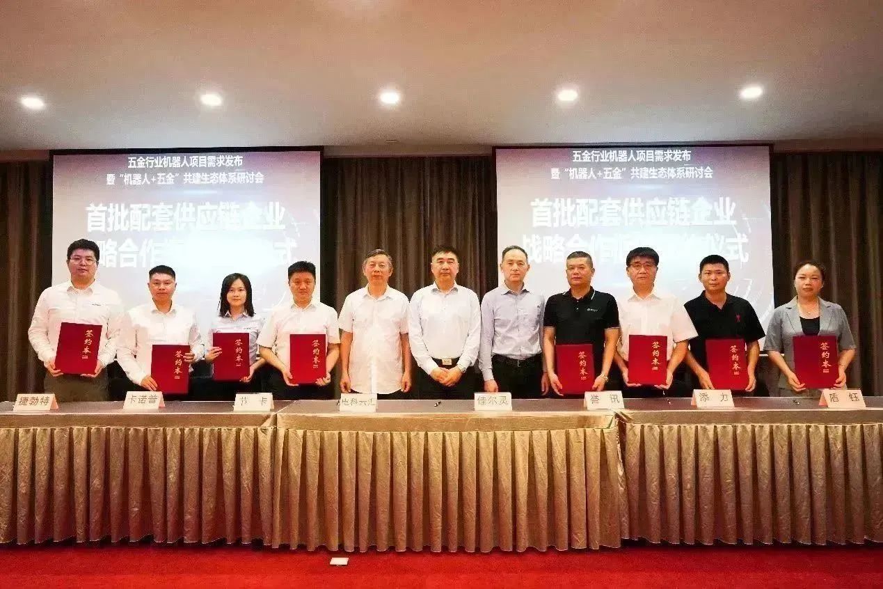 2023年6月27日,由中国“机器人+五金”产业协同推进方阵、电科云汇机器人应用创新服务平台、上海电科云汇机器人科技有限公司主办,由宁波佳尔灵气动机械有限公司承办的首届五金行业机器人项目需求发布暨“机器人+五金”共建生态体系研讨会在宁波奉化成功举办,来自相关部门领导、行业专家、企业家100多位参加了大会。